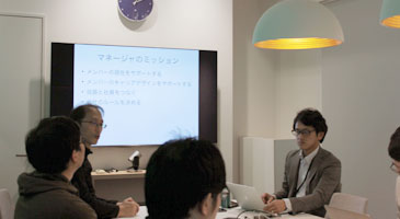 グループマネージャに昇格する前には、必ずマネージャ研修を受け、マネージメントに関する様々な技術や方法論を学びます。